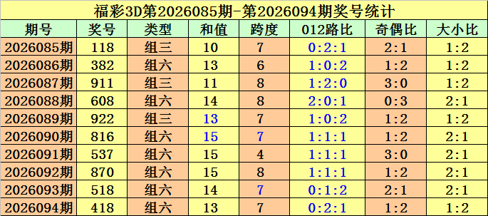开奖回顾:第2026094期福彩3D奖号为418。
